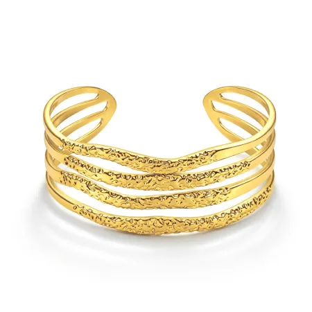 Bracelete aço banho dourado articulado max 4 fios. Especificação: Diâmetro do bracelete: Aprox. 6 cm Espessura do bracelete: Aprox. 2,5 cm Peso: Aprox. 21 gramas