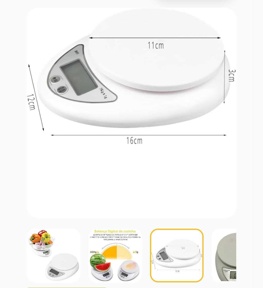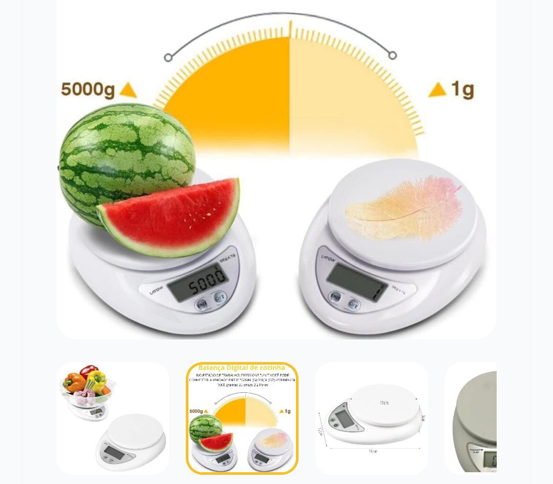 Balança Digital Alimento Com Bandeja Até 5kg Branca Capacidade Máxima 5 Kg Cor Branco