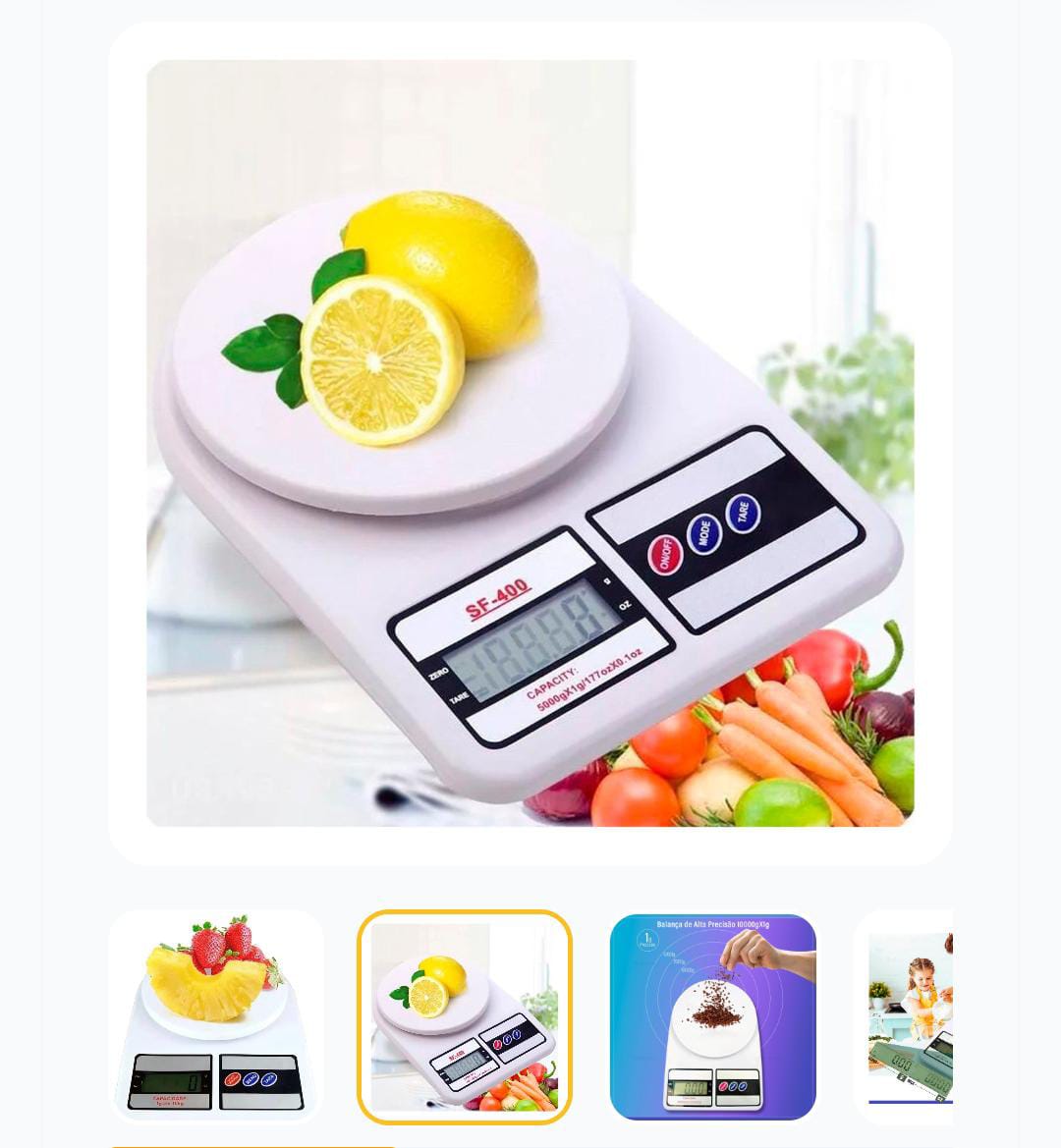 Características principais Marca Onyx Modelo SF-400 Outras características Tipo de balança: Digital Sensibilidade da balança: 1 g Tipos de alimentação: Pilha Tamanho da pilha: AAA Inclui recipiente: Não Inclui pilhas: Sim Quantidade de pilhas: 2 Material da plataforma: Plástico Com função tara: Sim Com indicador de bateria fraca: Sim Com desligamento automático: Sim Descrição **PRODUTO A PRONTA ENTREGA **ENVIO RÁPIDO PARA TODO BRASIL BALANÇA DE COZINHA DIGITAL ALTA PRECISÃO 10KG + BRINDE 2 PILHAS: ***************************************** – Capacidade de 1g a 10kg – Sistema de alta precisão de calibragem – Desliga automaticamente após o uso – Função para pesar em gramas (g) ou onça (OZ) – Possui substâncias como sesamina, sesamolina e sesamol (ação antioxidante) – Sistema de Tara para desconto de peso (ex: prato) – Visor Digital – Múltiplas aplicações: receitas culinárias, controles de regimes alimentares, uso farmacêutico, químico, agronômico, cosmético, entre outros MEDIDAS DO PRODUTO ***************************************** > 15cm (diâmetro do prato) > 25cm x 17cm x 4cm (comprimento x largura x altura) FICHA TÉCNICA: – Peso: 500g