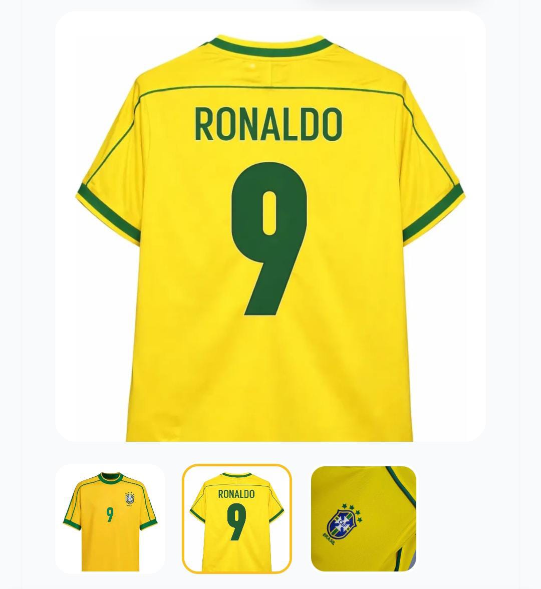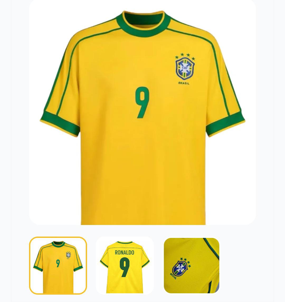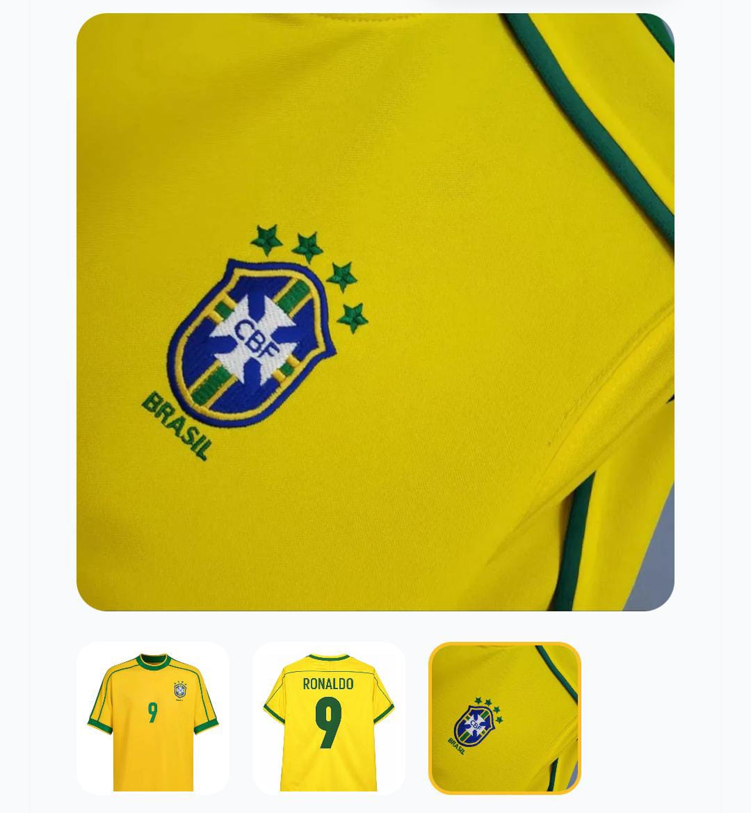 Características principais Marca Brasil Time Seleção Brasileira Tipo de camisa Retrô Tipo de ocasião Partida Versão da camisa Retrô Temporada Retrô Idade Adultos Gênero Masculino Número da camisa 9 Edição especial da camisa Copa 1998 Outros Tipo de time Seleção País do time Brasil Tipo de manga Curta Tipo de gola Gola Careca Tipo de escudo Bordado Camisa Seleção Brasileira Retrô – Copa do Mundo | Estilo Clássico Reviva a emoção das Copas do Mundo com esta Camisa Retrô da Seleção Brasileira, inspirada nos modelos clássicos que marcaram a história do futebol mundial. Ideal para torcedores apaixonados, colecionadores e amantes do estilo vintage. Destaques do produto: Modelo retrô clássico da Seleção Brasileira Inspirada nas Copas do Mundo Design vintage, elegante e atemporal Tecido confortável, leve e resistente Excelente acabamento e ótima durabilidade Ideal para uso casual, jogos, eventos esportivos ou coleção Consulte a tabela de medidas antes da compra Material: Poliéster premium Cores: Amarelo clássico da Seleção Brasileira Perfeita para presentear fãs de futebol e torcedores do Brasil! Garantia do vendedor: 30 dias