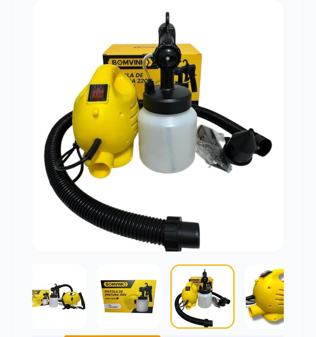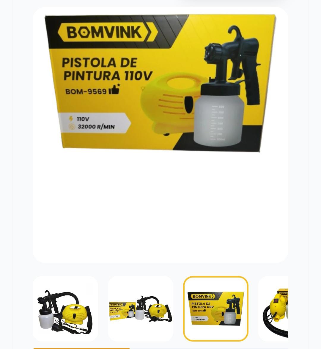 Bomvink BOM‑9569 é uma pistola de pintura elétrica prática e eficiente, ideal para quem deseja pintar paredes, móveis, portões e diversas superfícies com mais rapidez e acabamento uniforme. Com 650W de potência e reservatório de 800 mL, ela permite aplicar tinta de forma fácil e controlada, ajudando a economizar tempo e garantindo um resultado mais profissional. Características 🔧 Potência de 650W 🪣 Reservatório de 800 mL 🎨 Pulverização uniforme da tinta 🪶 Design leve e fácil de usar 🏠 Ideal para pintura de paredes, móveis, madeira e metal Perfeita para reformas, pintura doméstica e pequenos trabalhos profissionais.