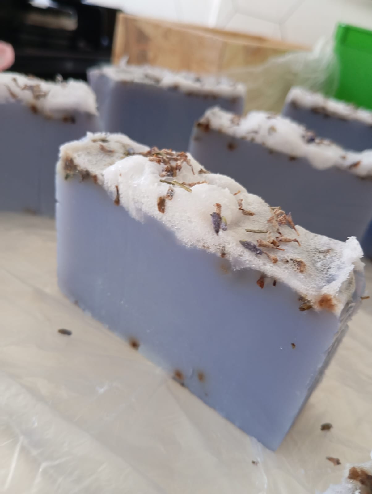 Sabonete Artesanal de Lavanda e Aloe vera, é excelente para acalmar e hidratar a sua pele com flagrância que te leva para um campo de flores que encanta. Insumos: - Base Glicerina: hidratação suave - Extrato de Aloe vera: ação calmante e hidratante - Lauril: Espuma suave - Essência de Lavanda: aroma suave - Flores de lavanda desidratada: contém propriedades calmantes, ajudando a reduzir o estresse e a ansiedade.